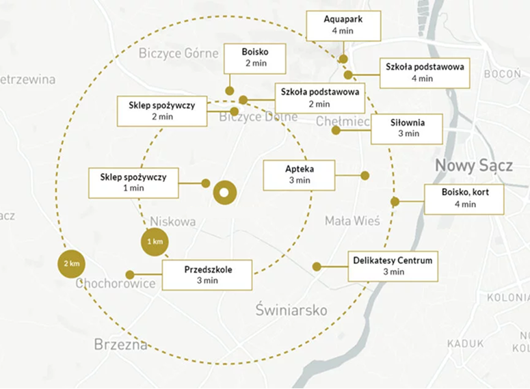 Dzięki bliskości miasta Nowy Sącz i rozbudowanej infrastrukturze okolicy wszystko czego potrzebujemy znajduje się dosłownie w zasięgu wzroku.